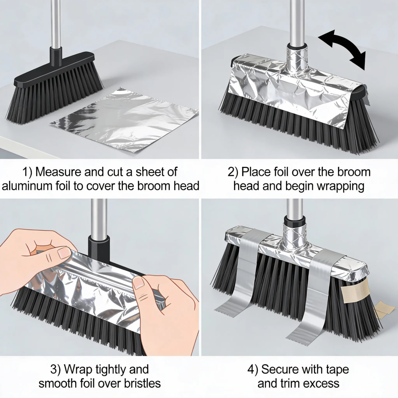 كيفية لف المكنسة بورق الألمنيوم، خطوة بخطوة