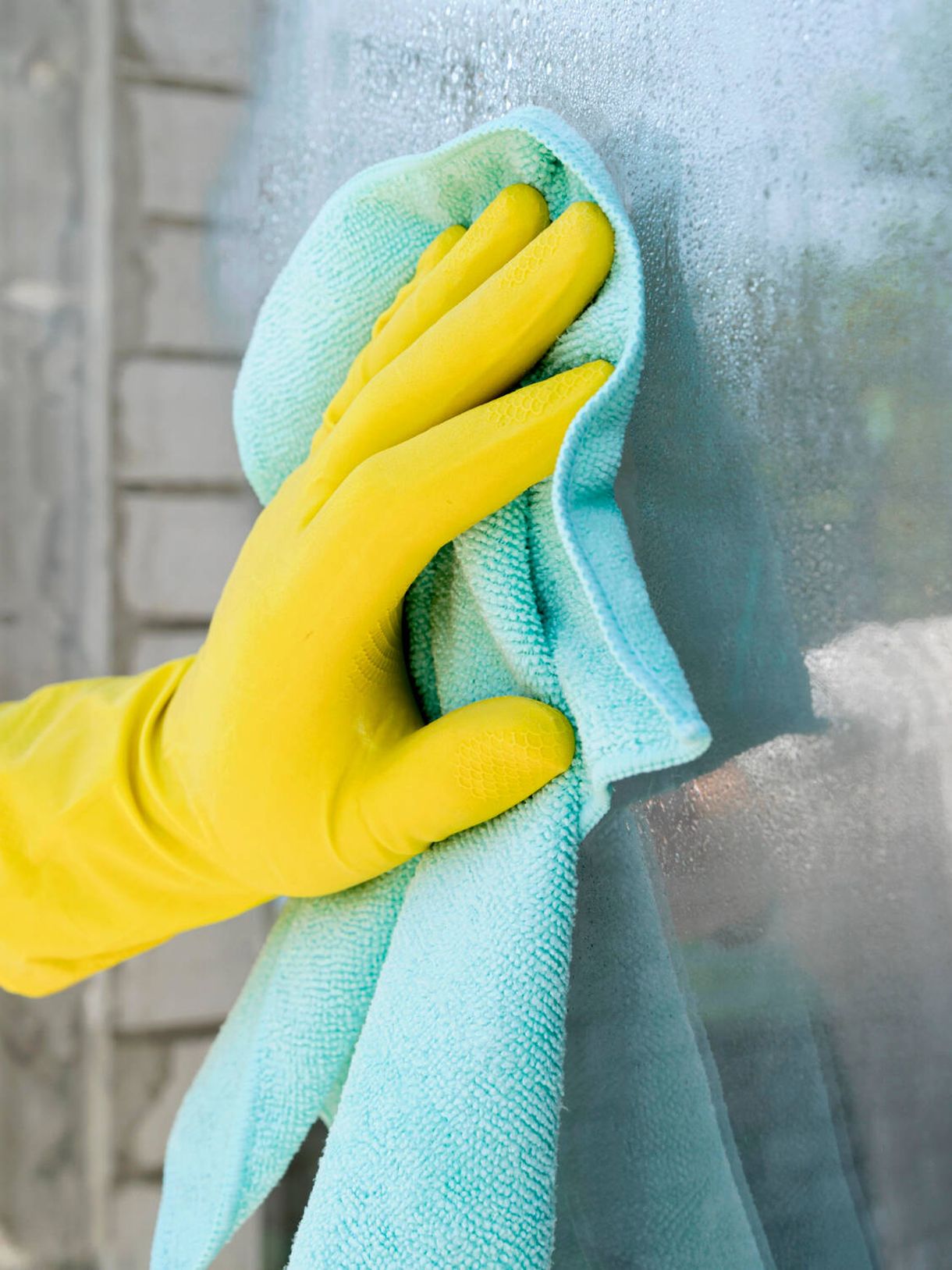 بعد فرك السطح، اشطفه بكمية وفيرة من الماء الدافئ لإزالة أي بقايا من المنتج. هذه الخطوة مهمة لتجنب ظهور خطوط أو علامات عندما يلتصق الصابون بالجدار. يجفف بعد ذلك بقطعة قماش من الألياف الدقيقة للمساعدة في الحصول على لمعة نهائية ومنع ظهور بقع جديدة، خاصة في المناطق المعرضة لبخار الدش.