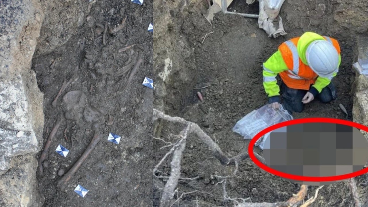 كانت عظام الحيوان مبعثرة بين الطين Arkeologerna