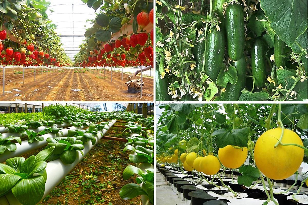 - الفواكه: الفراولة، الخيار، الفلفل الحار، البطيخ، الفواكه الحمراء (التوت الأزرق والتوت الأحمر). من الممكن حتى زراعة الحمضيات والرمان والمانجو في الأنظمة الأكثر تقدمًا.